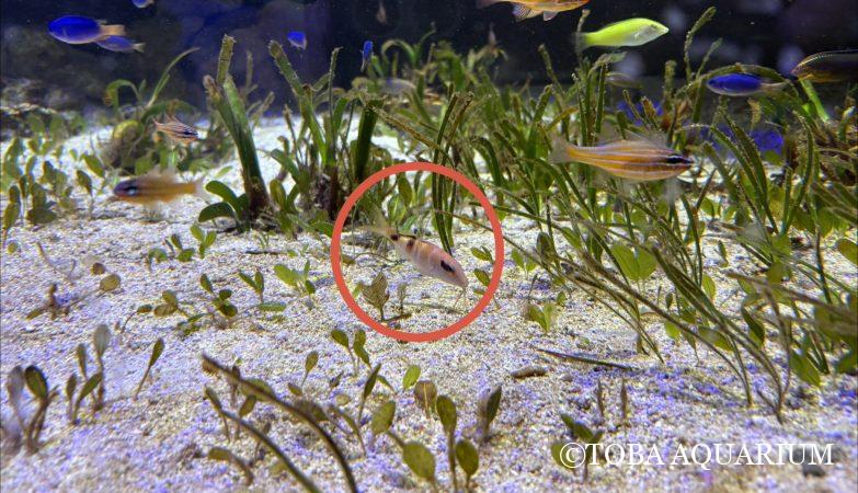 11月22日は「いい夫婦の日」ですよね!そこで、鳥羽水族館でなんと真珠婚(ペアになって30年)を迎えるルルとピーナツの様子をお知らせします。 (赤丸の辺りにいることが多いです) ルルは今年32才になったメス、ピーナツは1