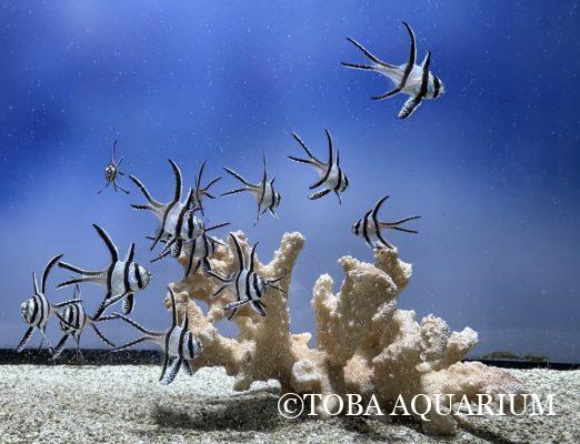 プテラポゴン・カウデルニィはウニやサンゴの間を群れで泳ぐ習性があるので、