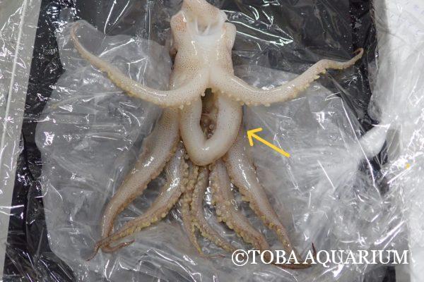 こ、これは…珍しい!皆さん、お分かりでしょうか?触腕がつながって「セルフ・イカリング状態」になっています。こんな触腕、初めて見ました。