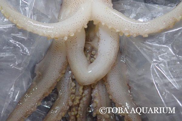 興奮した様子でラッコ担当のIさんが持ってきたのはスルメイカのゲソ。ラッコの給餌直前に気付いたそうです。