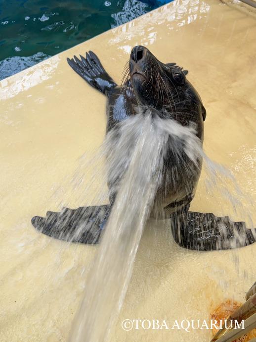 ミナミアフリカオットセイのひじきはジャンプが好きだったり大きな氷が好きだったりします。