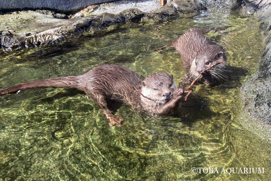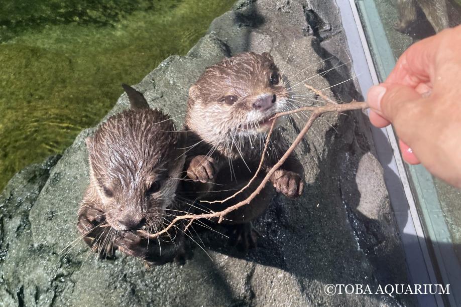 コツメカワウソ達にあげるおもちゃの中でも、けっこう人気のある小枝。
