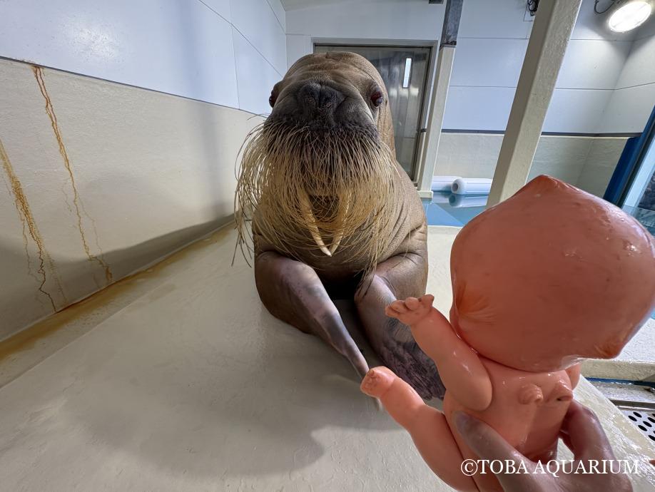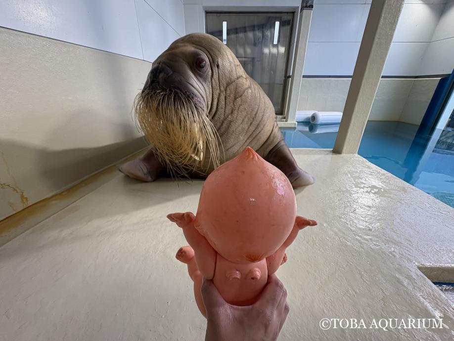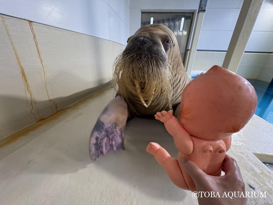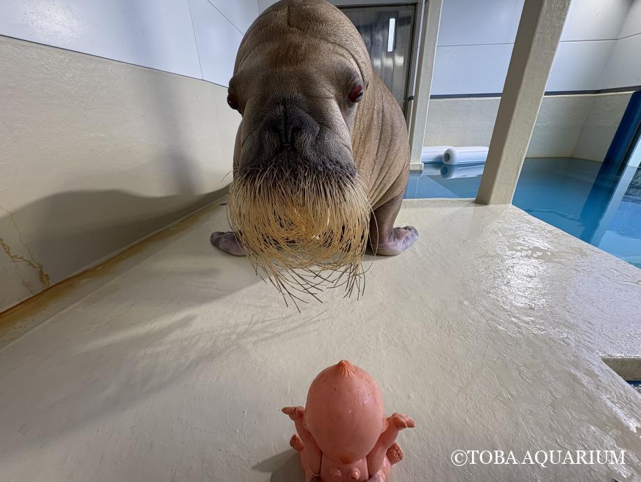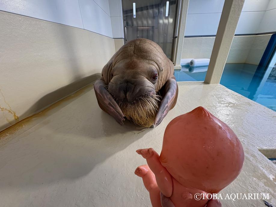 セイウチ水槽工事の為、別のプールで生活しているツララ。