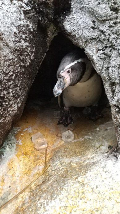 そんな中、仲良しのペアは巣作りに励みます。オスもメスも巣の材料となるものを運び、産卵の準備に入ります。鳥羽水族館ではこれからの時期、巣材用にヤシの葉や、人工芝等をペンギンが運びやすい長さに切って展示の陸場に置くようにしています。そろそろ巣材を準備しようと思っていたのですが、まだ本格的には入れていません。そんな中、待ちきれなかった「ゆりね(オス)」は…