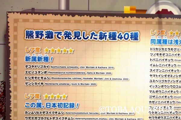 さて、現在開催中の企画展では、これまでに鳥羽水族館が熊野灘で採集した生物のうち、新種として記載された40種を紹介しています。
