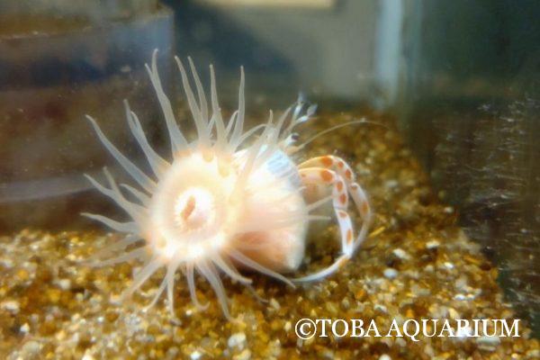 今回の成果は、先日新種記載発表されたばかりの「ツキソメイソギンチャク」 with アカモントゲオキヤドカリが11匹も!