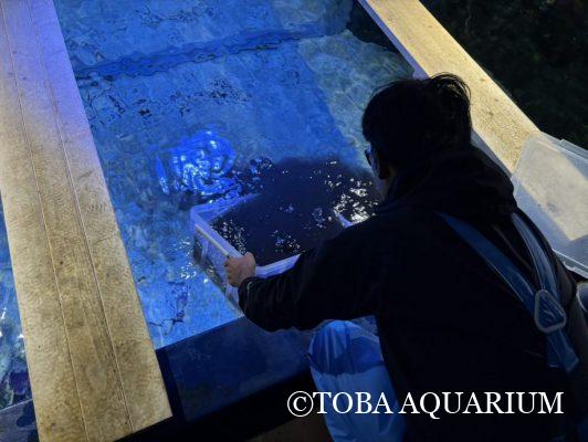 アオリイカを搬入しました 08 無脊椎動物2025年11月3日2025年11月3日 つじ どうも、イカ様飼育員のつじです。 毎年のことではございますが、 船を運転して、 アオリイカを釣獲し、 水槽へ無事搬入しました。 水槽投入直後なので隅っこで小さくなっていますが、 数日経てば悠々と泳ぎ出すと思います。 この水槽をご覧になっていただいている方が多いみたいで、ありがたい限りです。 小型の水槽で飼育していたアオリイカは一旦バックヤードへと移動させました。 もう少し大きくなったら今回導入した個体と一緒に泳いでもらおうと考えています。 【飼育研究部 つじ】 Share