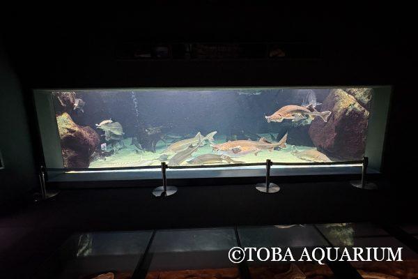 チョウザメは、Cゾーン「古代の海」の奥、左側の水槽にいます。