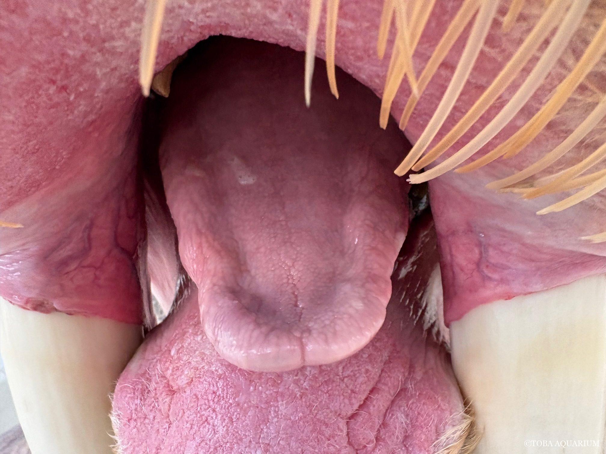 セイウチの舌をよく見ると私たちのような味蕾程の凹凸は分かりません。触ってみてもツルツルに近い感覚。