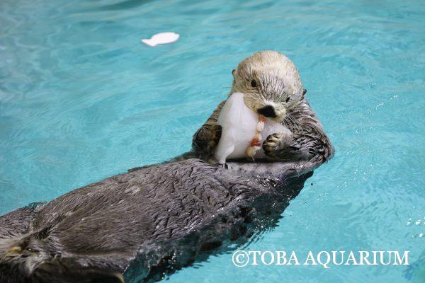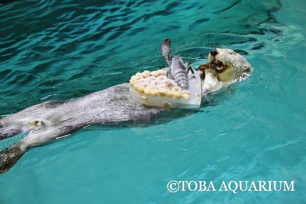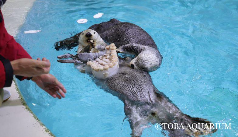 今年もラッコのメイちゃんとキラちゃんにクリスマスアイスケーキをプレゼントしました~(^^)/