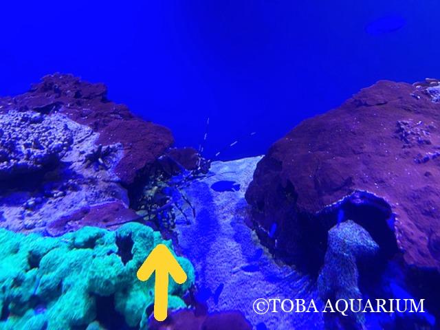 コーラルリーフダイビングゾーンの大きい水槽の中央部分にいます。