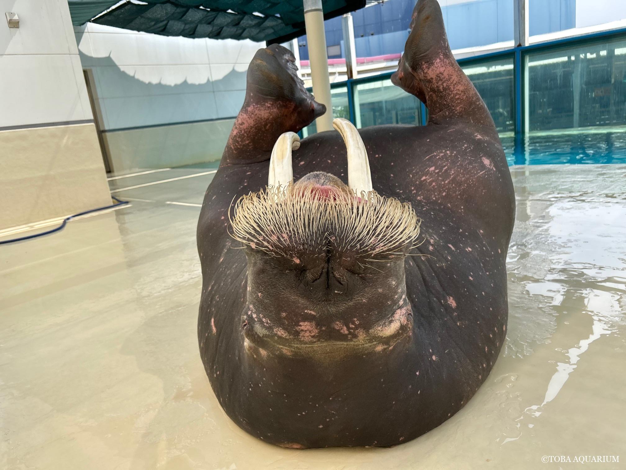 ポウちゃんも鳥羽の寒さに負けないよう脂肪を蓄えているため、餌の量は変わらずとも体重が増えています!