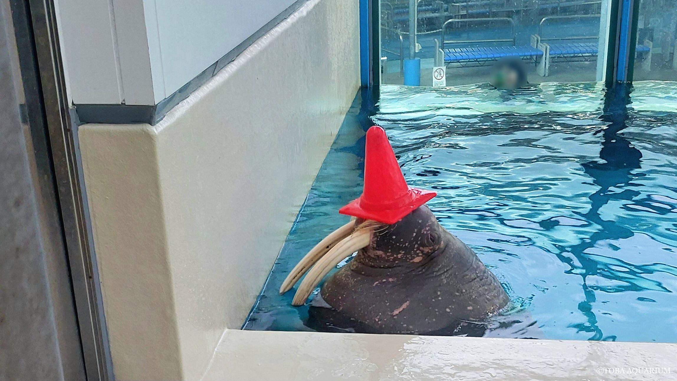 皆さんこんにちは、ともちゃんです。 大分のうみたまごから「いちこ」ちゃんもやってきて、現在鳥羽水族館では5頭のセイウチたちをご覧いただくことができます。 なんだか賑やかになってきました! ポウ