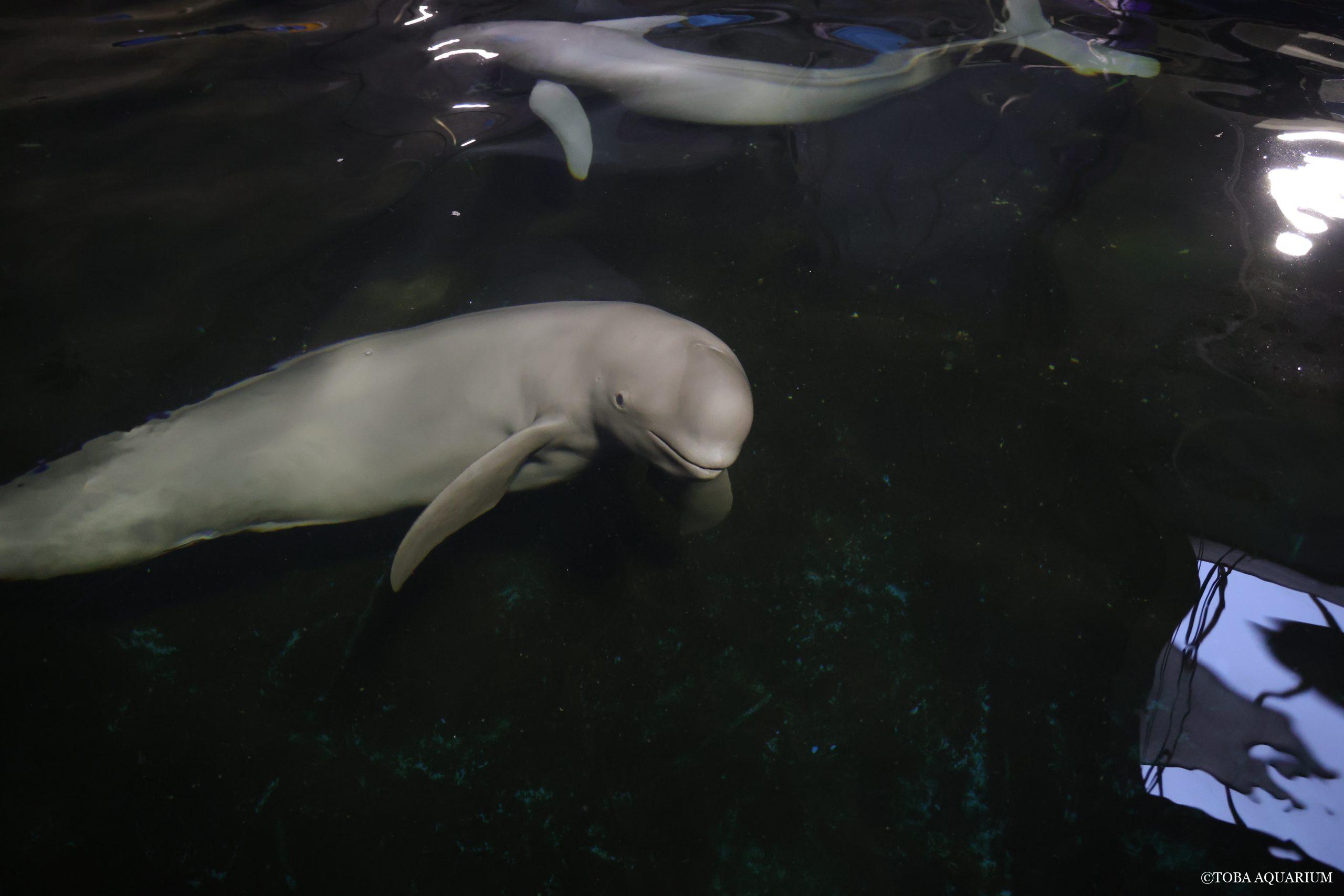 皆さんスナメリ水槽を上から覗けることはご存知でしょうか? こんな感じで上からスナメリ達の様子を観察できます。 今回皆さまにお知らせするのは、上から覗くと奥に見えるプールにいたココロ・ワカバの移動です。 写真は移動前のココ