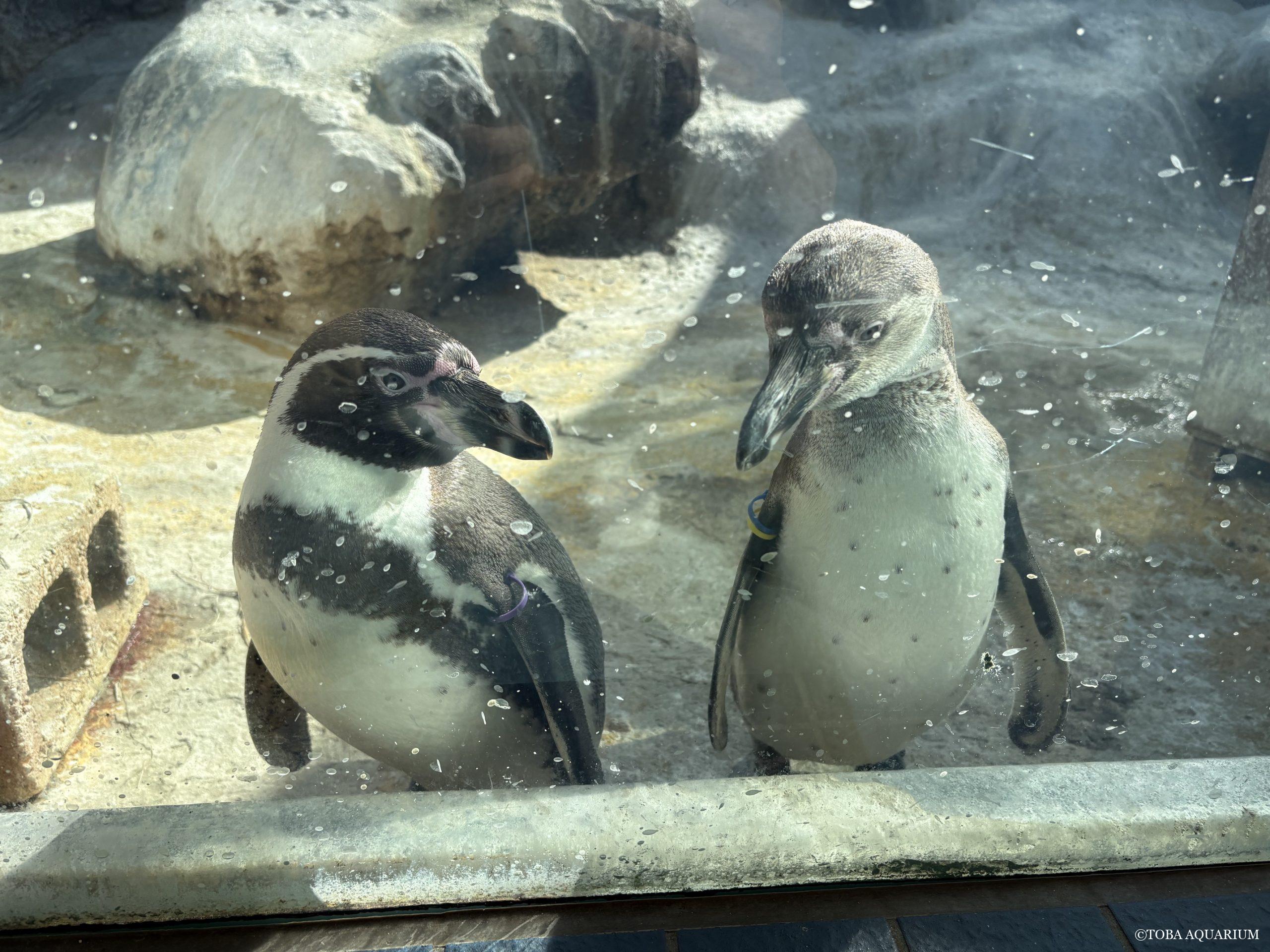 鳥羽水族館では現在、フンボルトペンギンを飼育しています。 日本で一番多く飼育されている種類です。 胸の辺りの黒い帯と嘴から目の辺りがピンク色なのが特徴。 このピンク色は皮膚の色なんです! 生息