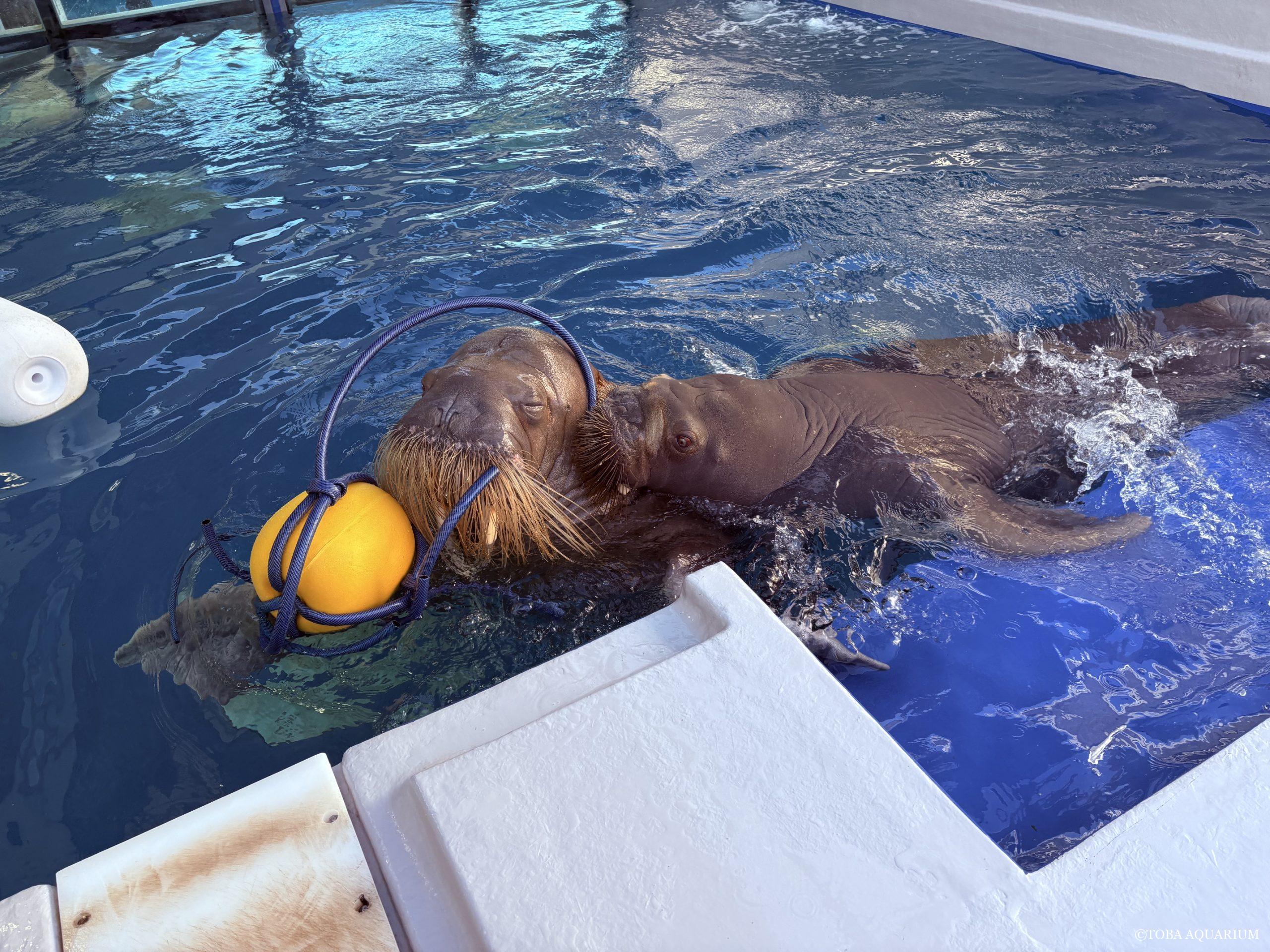 みなさんこんにちは! アフリカマナティーの「みらい」が暮らす水槽では、他にもスッポンモドキや魚たちが一緒に過ごしています。 ↑スッポンモドキ(左)と仲良くしている?パーカーホ(右) 特に魚たちのために、酸素量が少なくなり