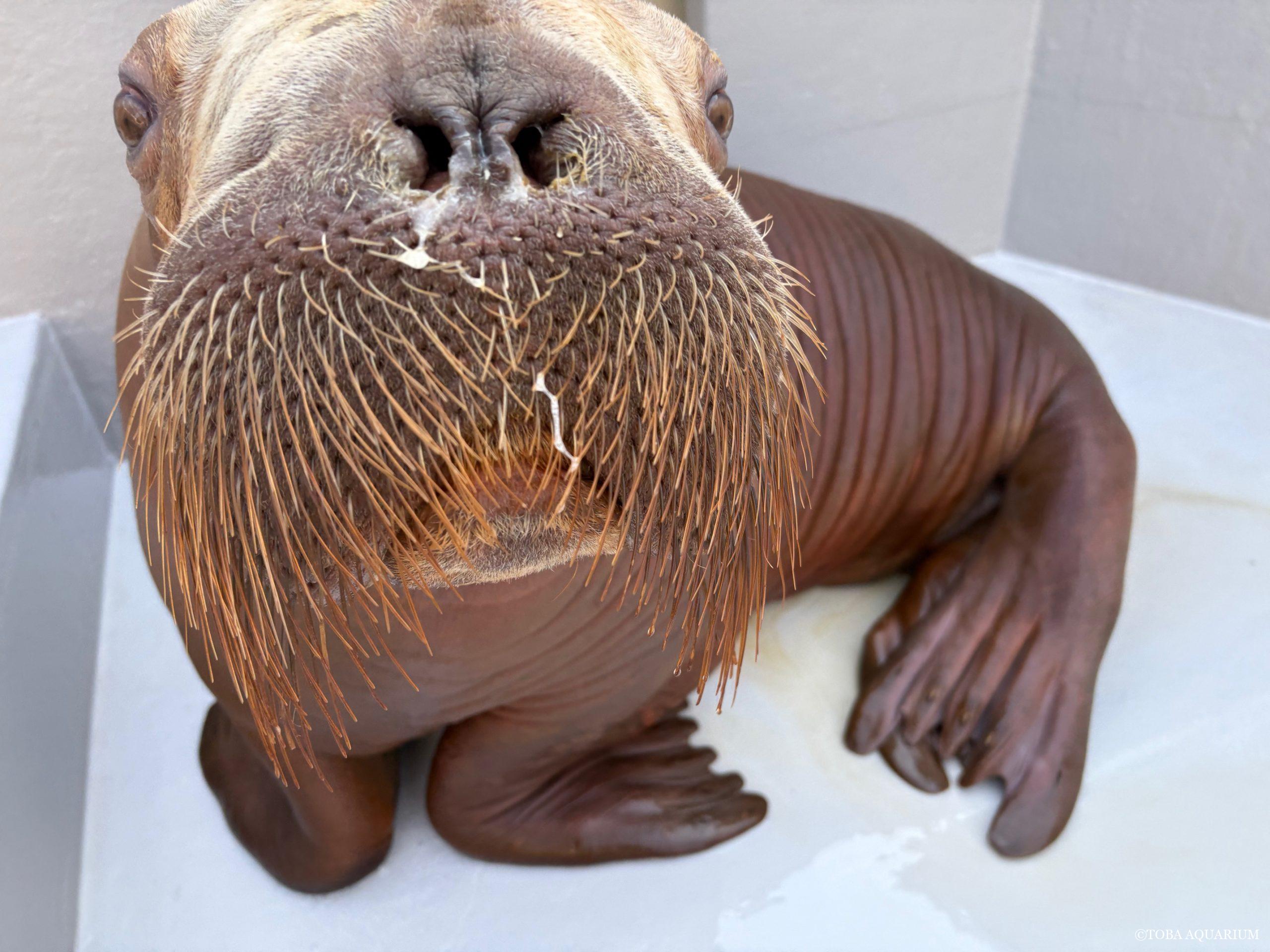 皆さんこんにちは、ともちゃんです。 大分のうみたまごから「いちこ」ちゃんもやってきて、現在鳥羽水族館では5頭のセイウチたちをご覧いただくことができます。 なんだか賑やかになってきました! ポウ