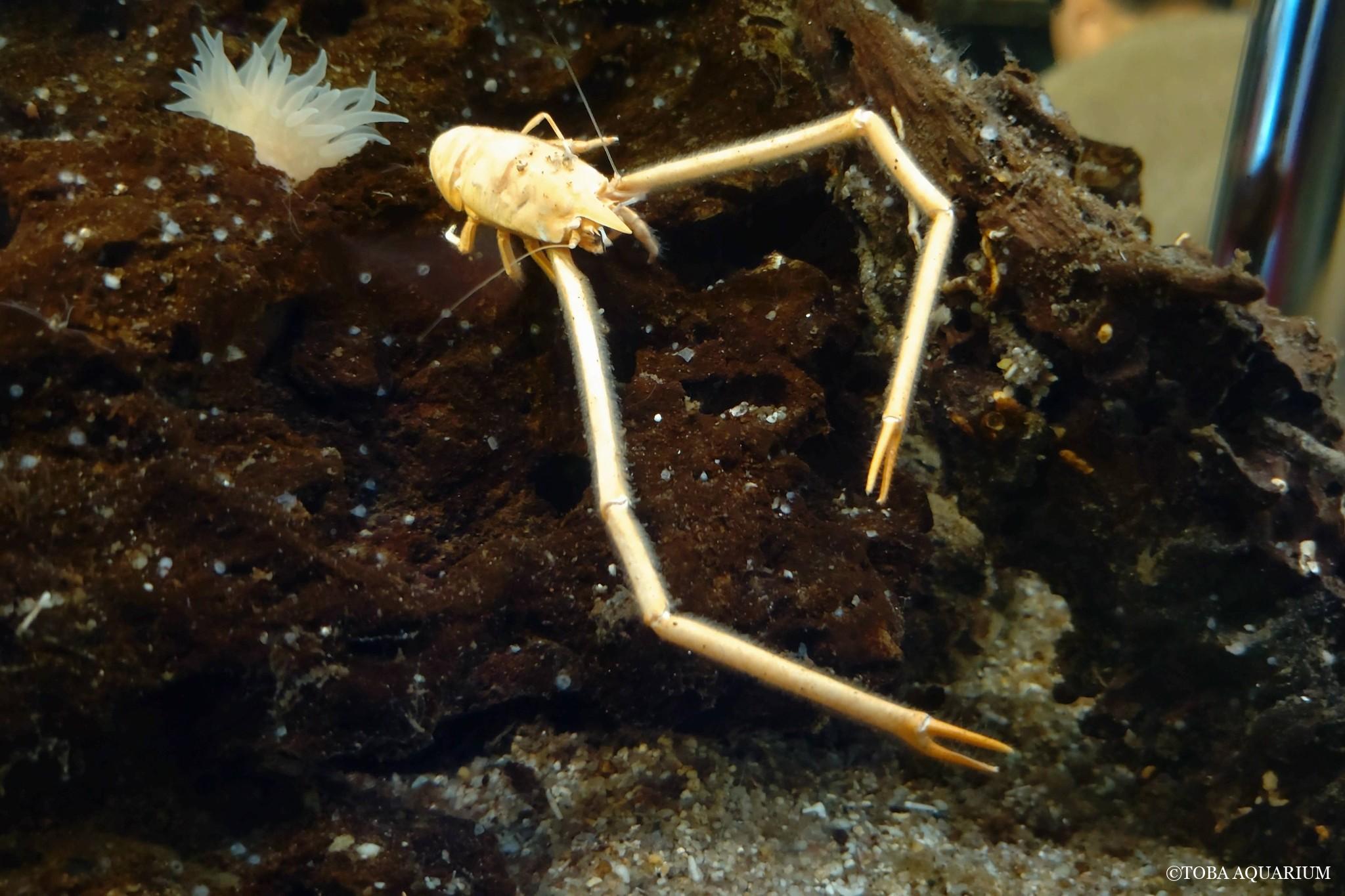 漸深海帯に生息するオカダシンカイコシオリエビが久しぶりに入館しました。 今回の個体はなかなか立派なオスです。 いやホンマ、腕が長すぎるて。セルフ・マジックハンドか。 そして脚は極端に短いとか。なんでやねんw この長い腕(