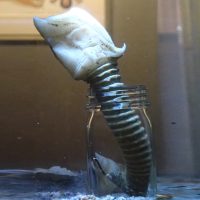 全身がヒゲのような皮弁に覆われているカワハギの仲間。カワハギの仲間は少々気性が荒い印象だが、本種はおとなしい性格をしている。