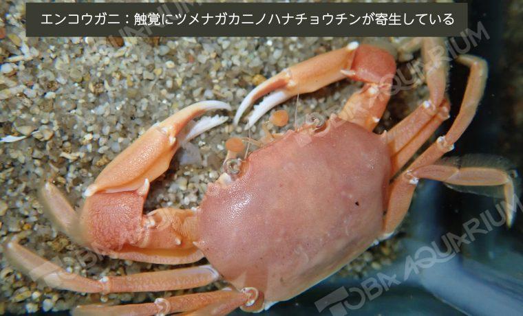 2022年に記載された新種のアミヤドリムシ。エンコウガニの触角に寄生する。ダイオウグソクムシなどと同じ等脚目だが、そうとは思えない体のつくりをしている。丸い体はメスで、メスの体の中に小さなオスが隠れている。