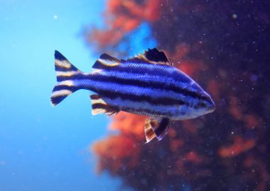 名前にベニ(紅)とつくが、赤色以外の個体もいる。エスカと呼ばれる疑似餌で、獲物をおびき寄せ捕食する。他種とは、体側に暗色斑があることと、エスカの後ろにある第二棘が棒状に見える事から区別される。