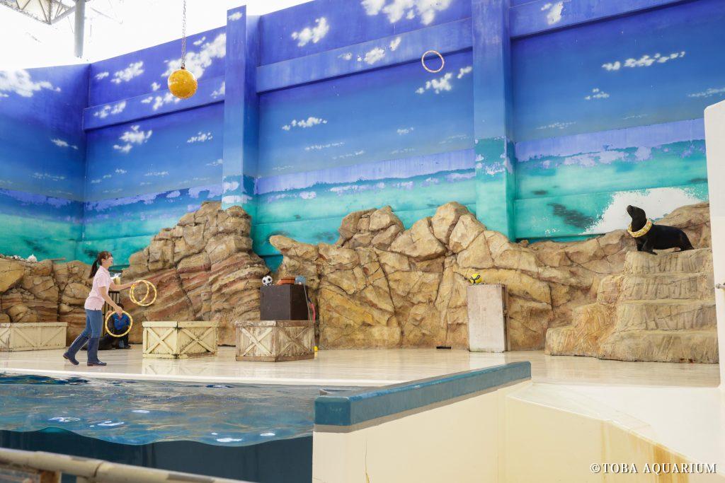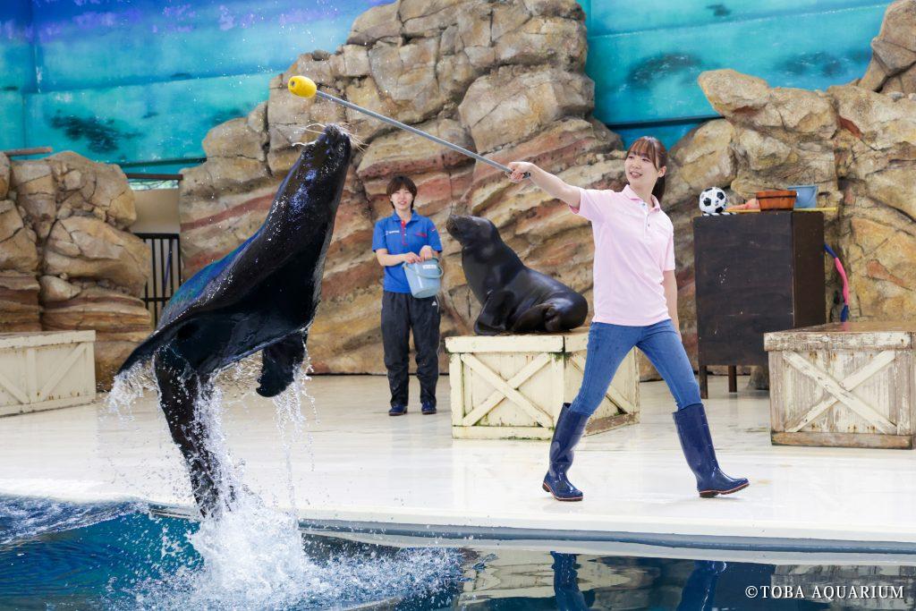 ショーにはオタリア2頭が登場し、松井さんの相棒はオタリアの「あられ」、もう1頭のオタリア「がっちゃん」のトレーナーは松井さんの先輩である八幡さんが務めました。