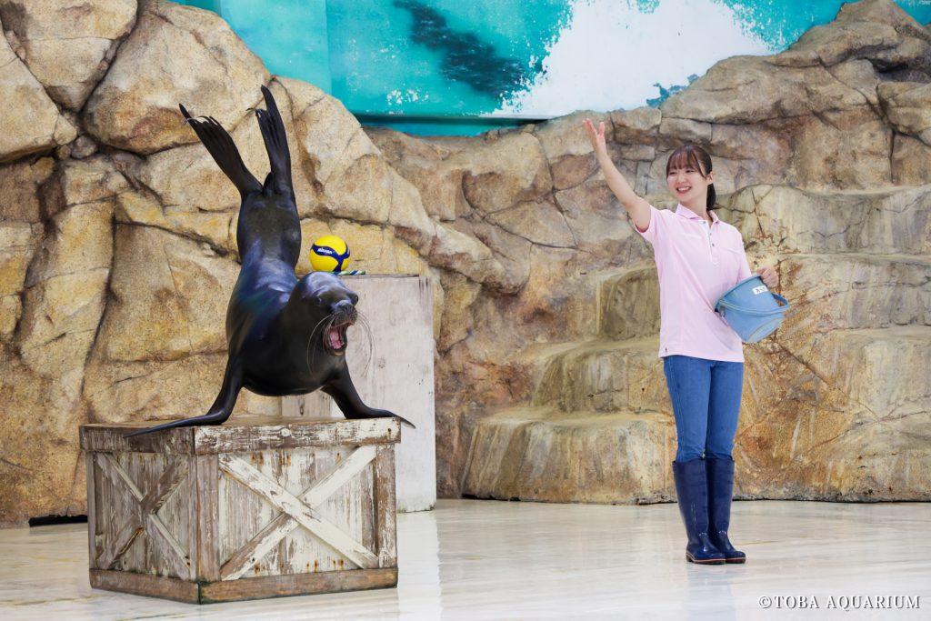 今年2月に入社し水中入社式でも活躍した新人飼育係の松井さんが、約7か月間のトレーニングを積み、本日9月30日(火)15:30のアシカショーでデビューしました。