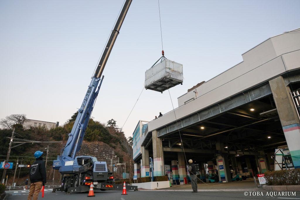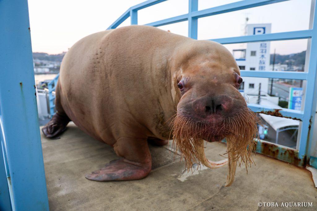 1月8日(木)にブリーディングローン(種の保存を目的とした動物の貸し借り)により、「城崎マリンワールド(兵庫県豊岡市)」からメスのセイウチ「そら」を鳥羽水族館へ輸送しました。城崎マリンワールドとの間でセイウチのブリーディングローンを行うのは、今回が2回目となります。