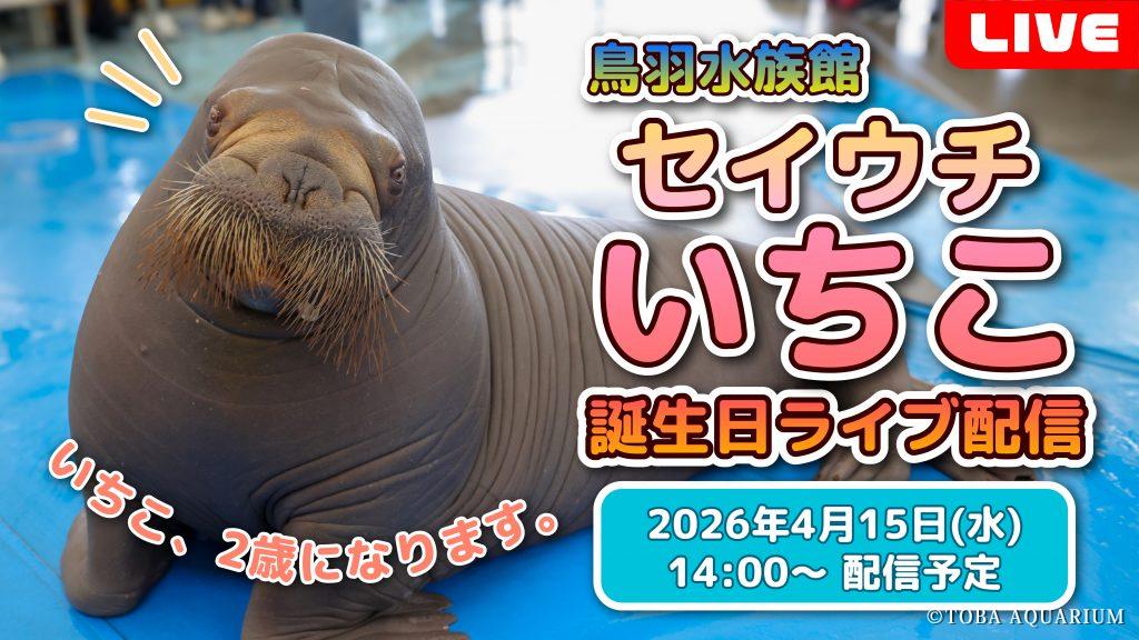 2026年4月15日(水)にセイウチ「いちこ」が2歳の誕生日を迎えます。これを記念して、お誕生日をお祝いするイベントや新グッズが登場します。